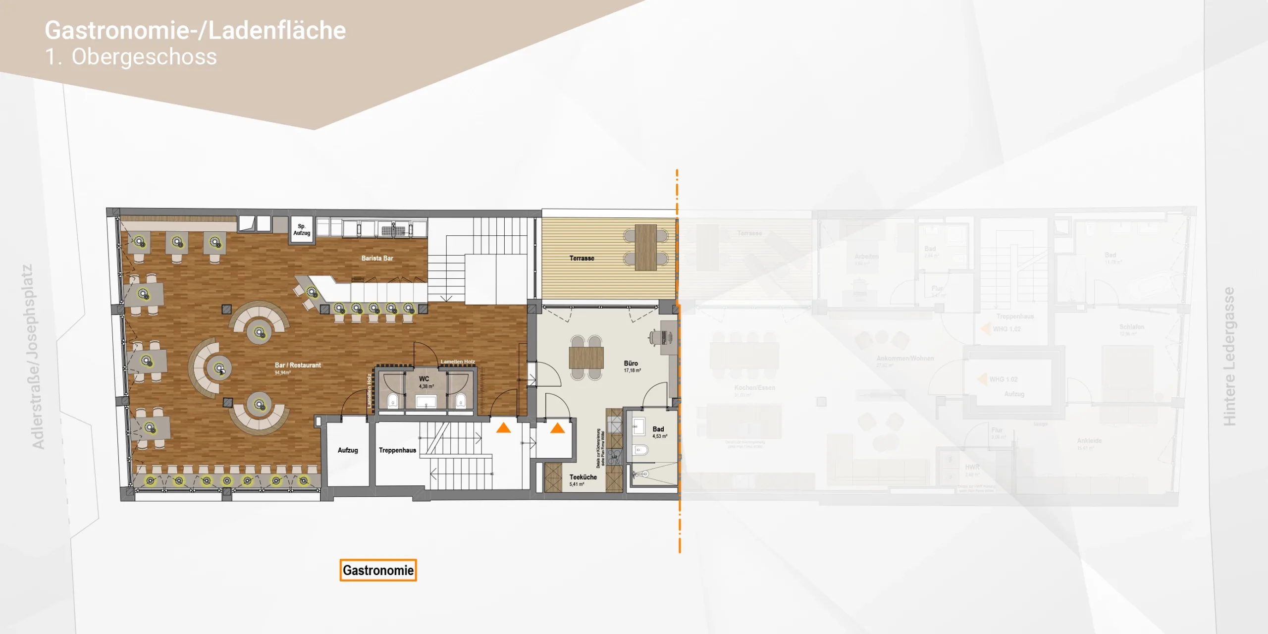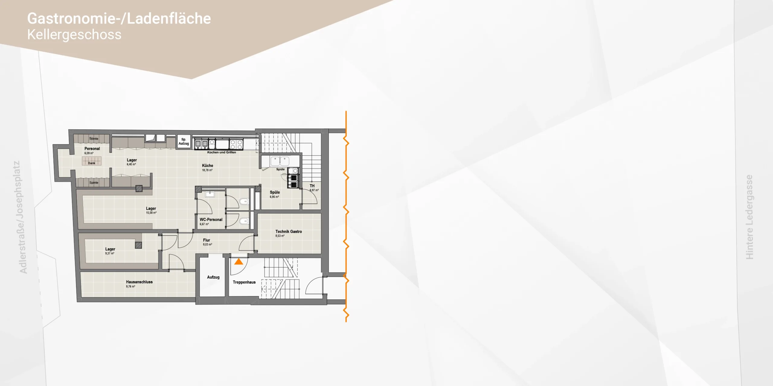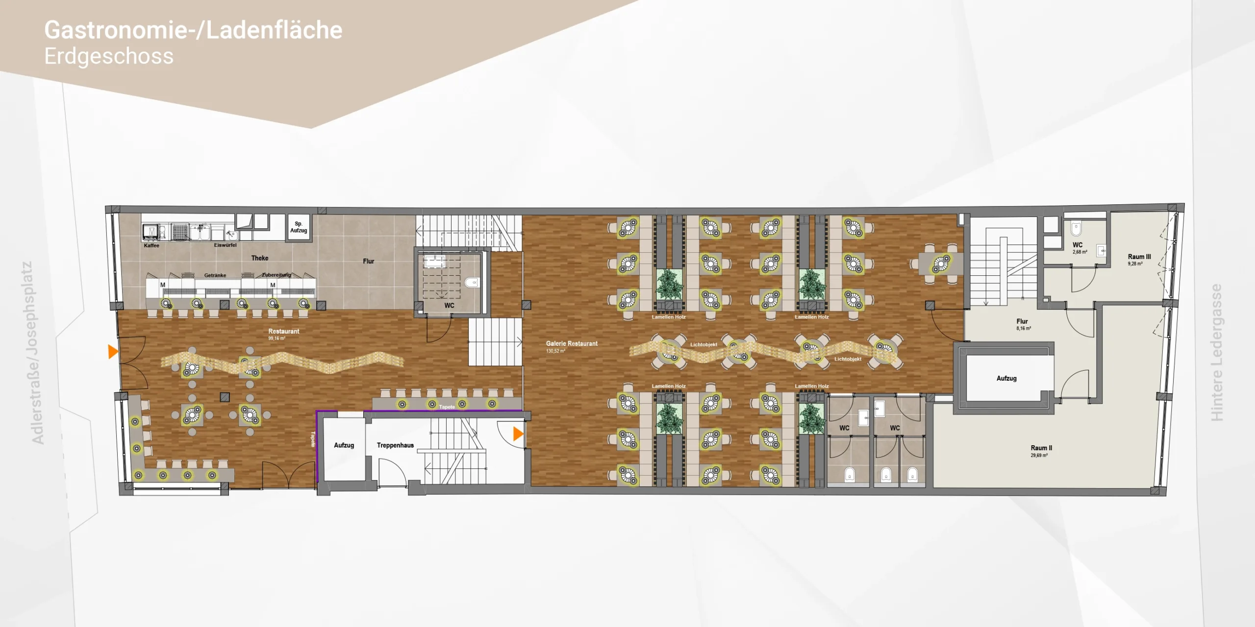 Eine großzügige Gewerbefläche von 450 m² auf mehreren Etagen steht zukünftig neuen Gastronomie- oder auch Retailkonzepten offen.
